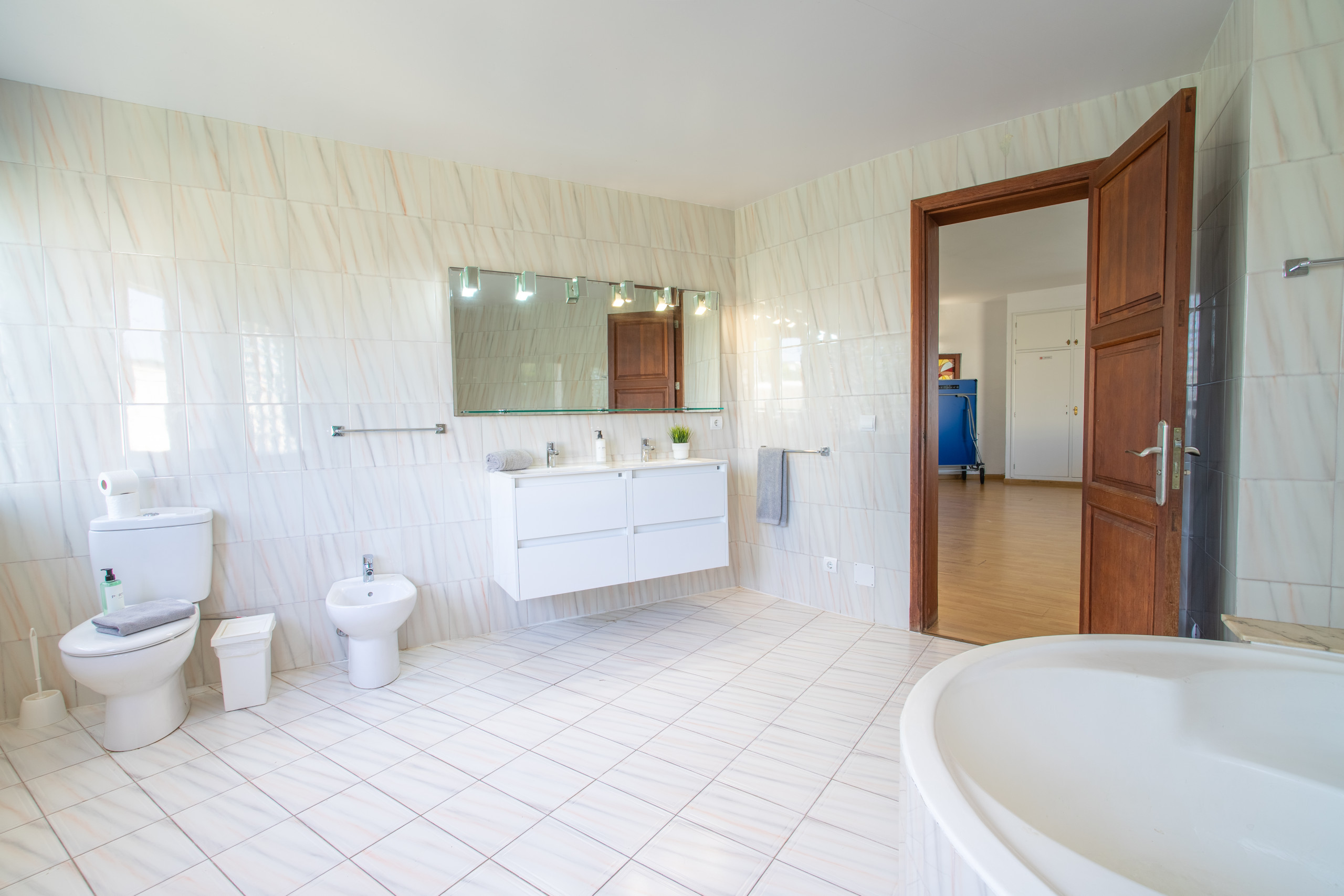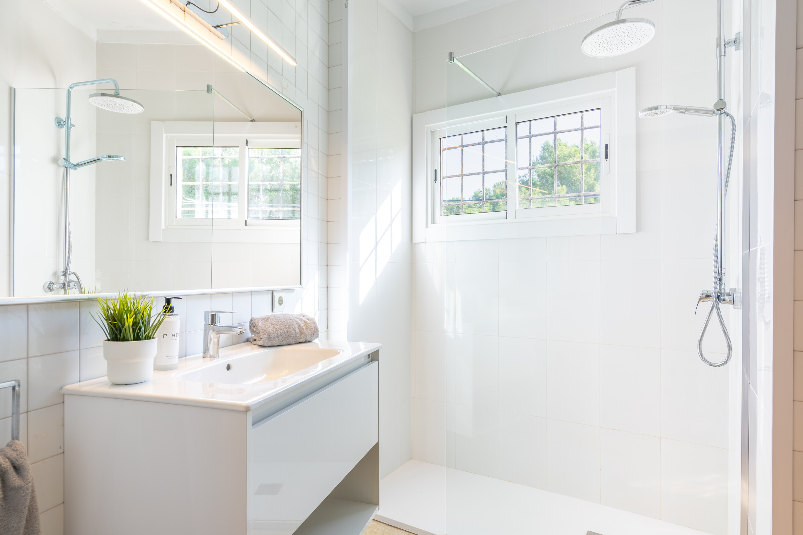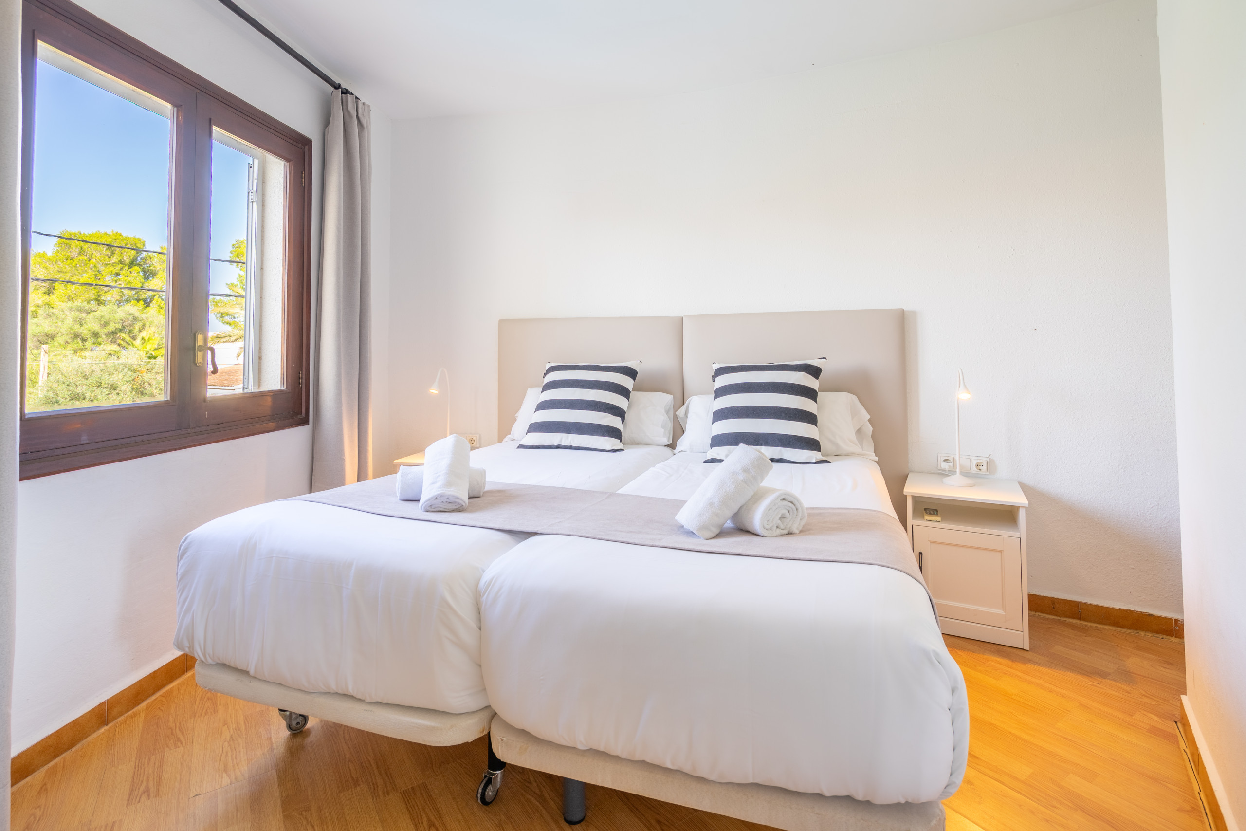 We rented this property as a group of 12 people right after our graduation and we can say that we really enjoyed staying there. Everything was like it was described, the size was perfect for this number of people, even though we did not really use the living room as we enjoyed eating and relaxing outside a lot -having a pool to ourself was great- . On the first day we were provided with drinking water. I would also like to point out the nice service of Portic Villas. It was easy communicating and they replied fastly to our messages. The villa is located on the very end of the promenade of s'arenal on a small hill. For all the party people out there-it took us about 20 minutes to the Megapark by foot- After all we would definitely book this villa again.