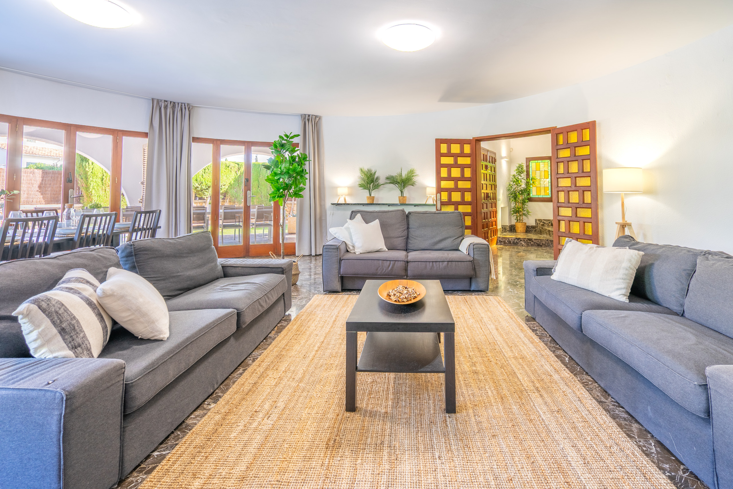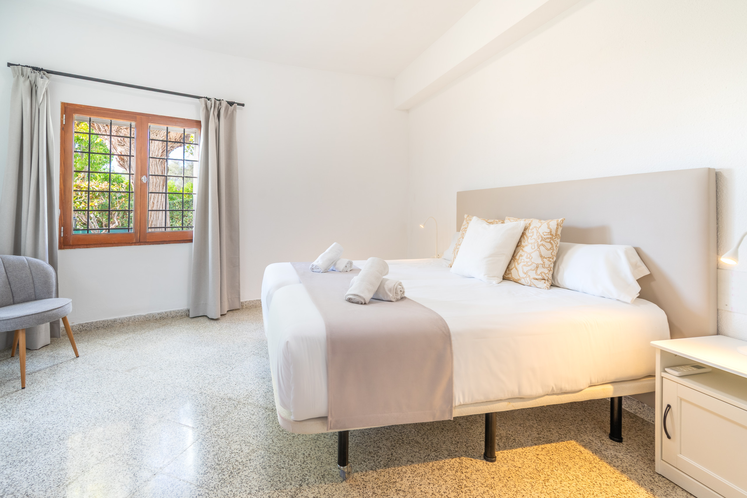 We were 9 persons, 4 kids 9-12 years. The pool meant that we-kids- always had thing to do in the property a real value I missed nothing in the house and it was as nice as the photos tell. - Many possible eating/social places, inside and outside. Quiet villa-area, but short walking distance to beatches, small and big ones, and shops and good eating places mm. Easy to travel to Palma ol. We rented a car and took day trips to Palma and other places, beautyful, interesting anf fun places it is so much to experience here -. - The Villa is good for many groups familys with children, cycle-teams, firms. Very nice to see so many people cyckling together perfect cykle-ways, for long distances, easy to rent bikes. Good availabilty by Portic Villas, - nice, friendly people-. - Both kids and grown ups really enjoyed the villa and surroundings, and the island, and I am glad to recommend it.