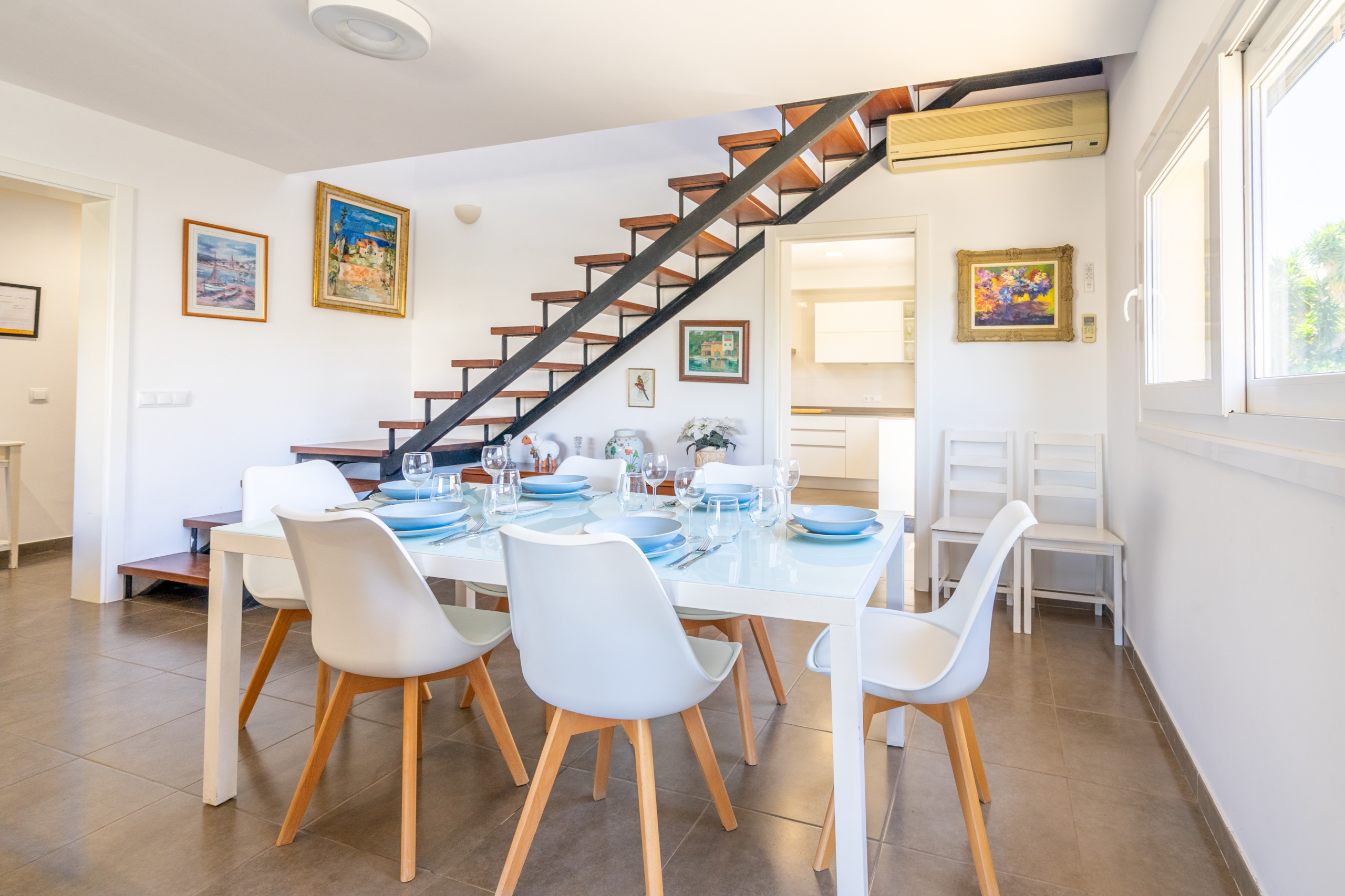 Profitez de cette maison moderne de deux étages à Cala Blava avec piscine privée. Avec 4 chambres climatisées, 3 salles de bains complètes et un toilette, le logement combine espace et confort. La cuisine est entièrement équipée et le salon, lumineux et accueillant, invite à se détendre en regardant un film, en écoutant de la musique ou en lisant.